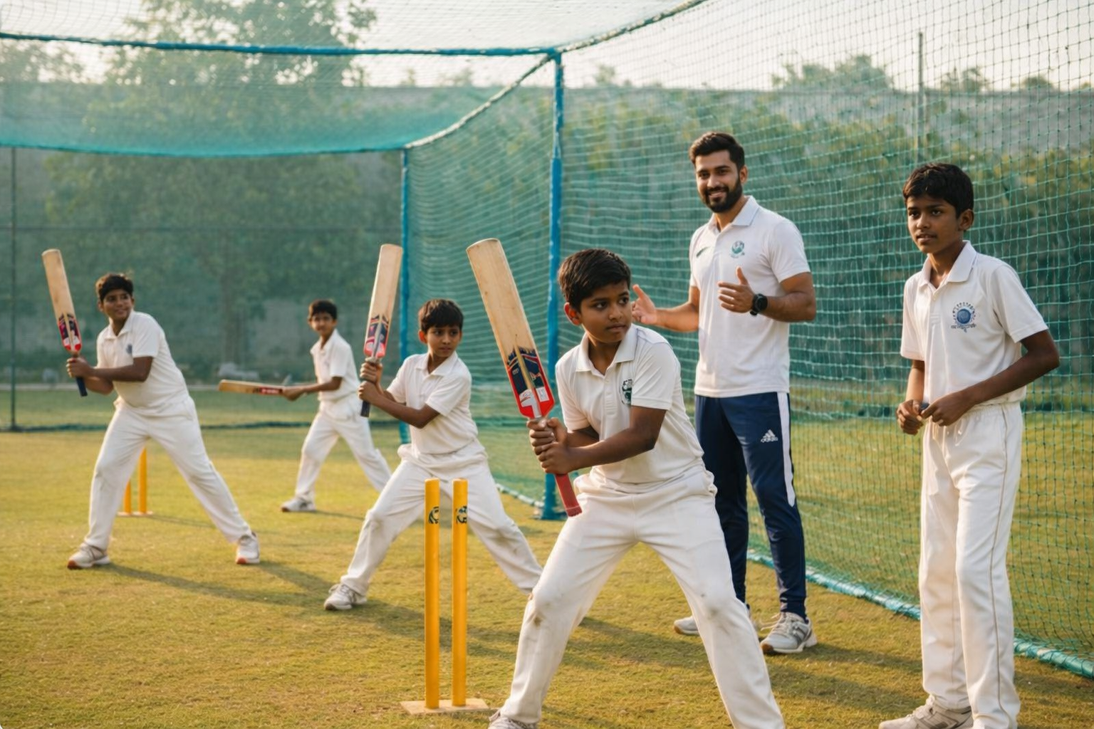 Technical basics of batting, bowling, and fielding, along with discipline, teamwork, and understanding match rules.